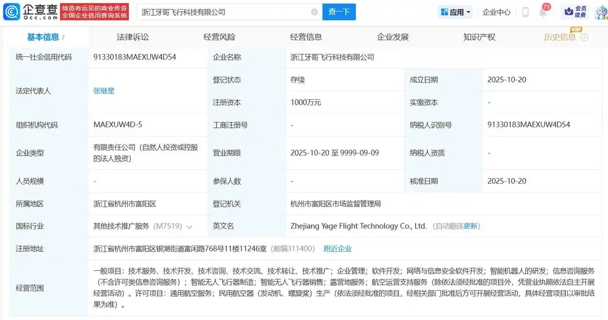 4月2日,张雪机车创始人张雪在个人社交平台发布视频称实盘配资网站论坛,近期大量资本通过多渠道主动接洽,自身暂无法承接,遂推荐其师父牙哥(张继星),对方正研发制造飞机并开展融资。据企查查APP显示,牙哥(张继星)于2025年10月创办浙江牙哥飞行科技有限公司,注册资本1000万元。公司经营范围涵盖技术服务、智能无人飞行器研发制造、航空运营支持等一般项目,以及通用航空服务、民用航空器生产等需审批的许可项目。